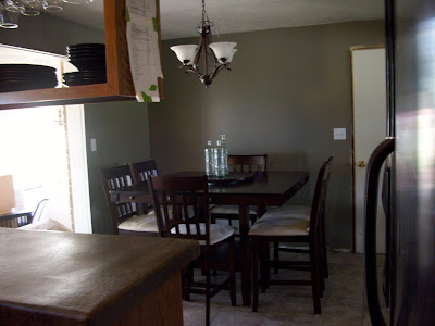 View from the kitchen into the dining room. I used part of my tax credit that I got back to buy it. Thank you Uncle Sam! I got the dining set at Bed Heaven in Layton. Now I just need to decide if I want to put a rug underneath it... Also, in this picture you can see the new wall color.